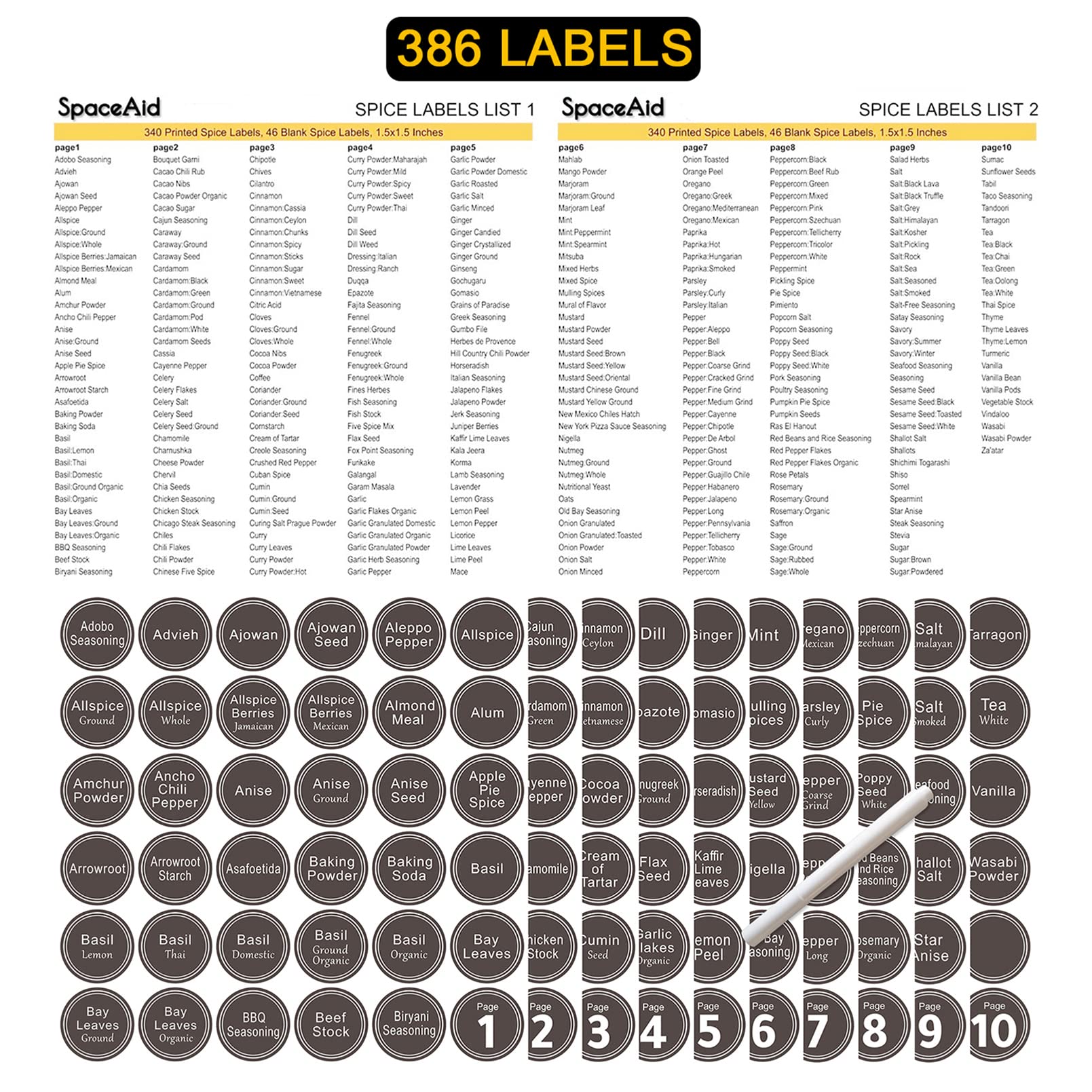 • 386 Spice Labels: 340 labels have been preprinted, 46 labels are blank and you can diy with it; Label the jars to avoid the hassle of searching when cooking