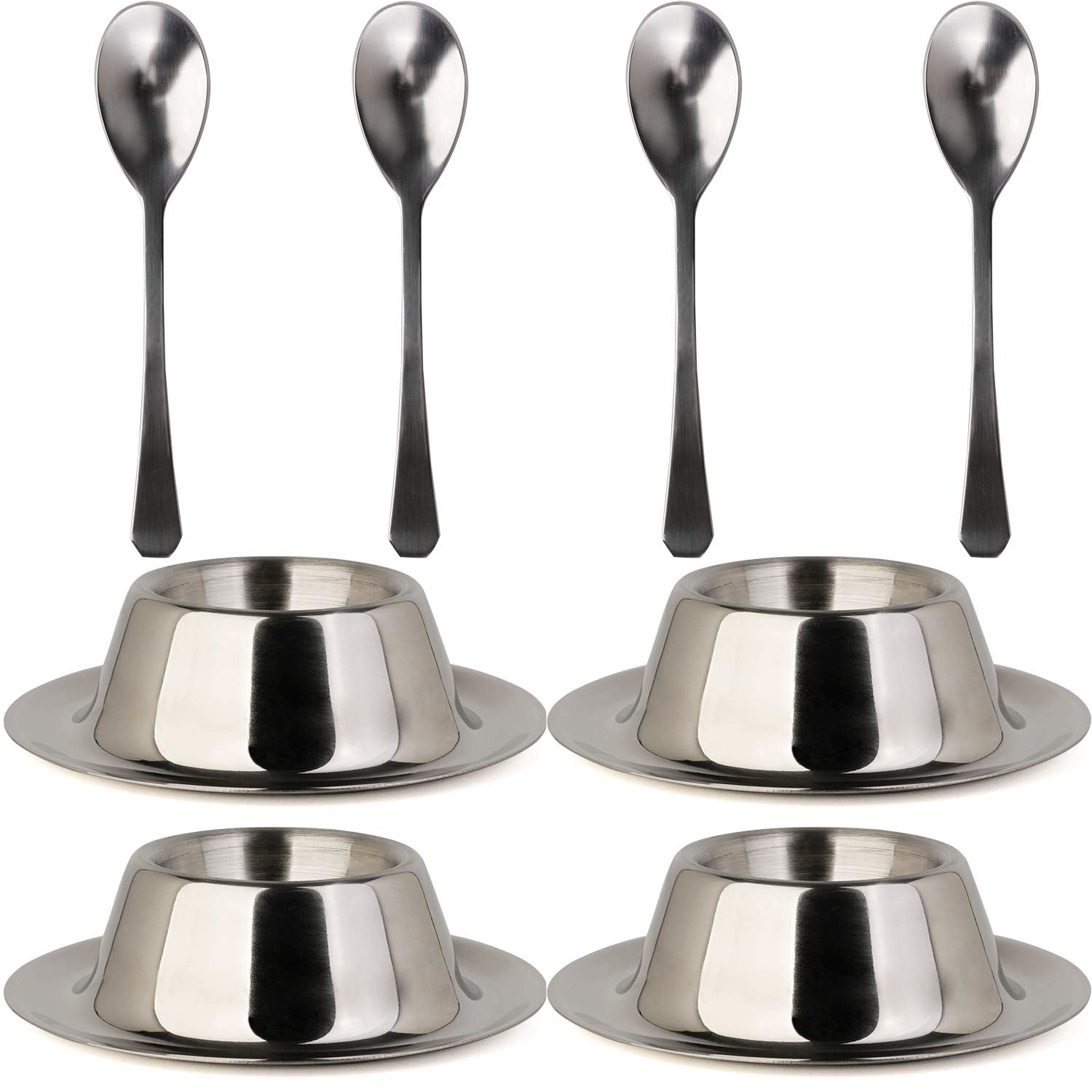 • Egg cup holder set this is an elegant set of 4 egg cup holders, 4 stainless steel spoons that is perfect for your daily soft-boiled eggs breakfast! Enjoy your beautiful egg cup holder set and it will be the perfect gift for your lover ones.