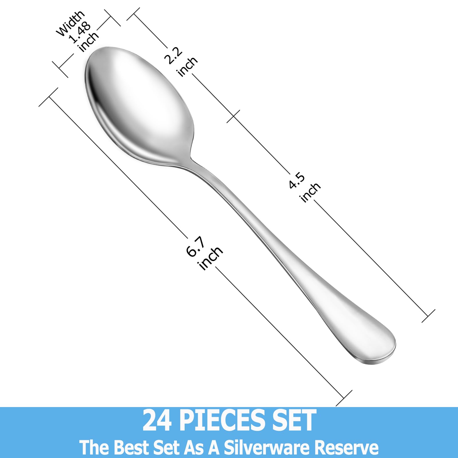 Teaspoon Set,16 Piece 6.7" Spoons Silverware, Premium Food Grade Stainless Steel Tea Spoons, Durable Small Spoon, Good Teaspoons, Kitchen Dessert Spoon Set, Mirror Finish & Dishwasher Safe