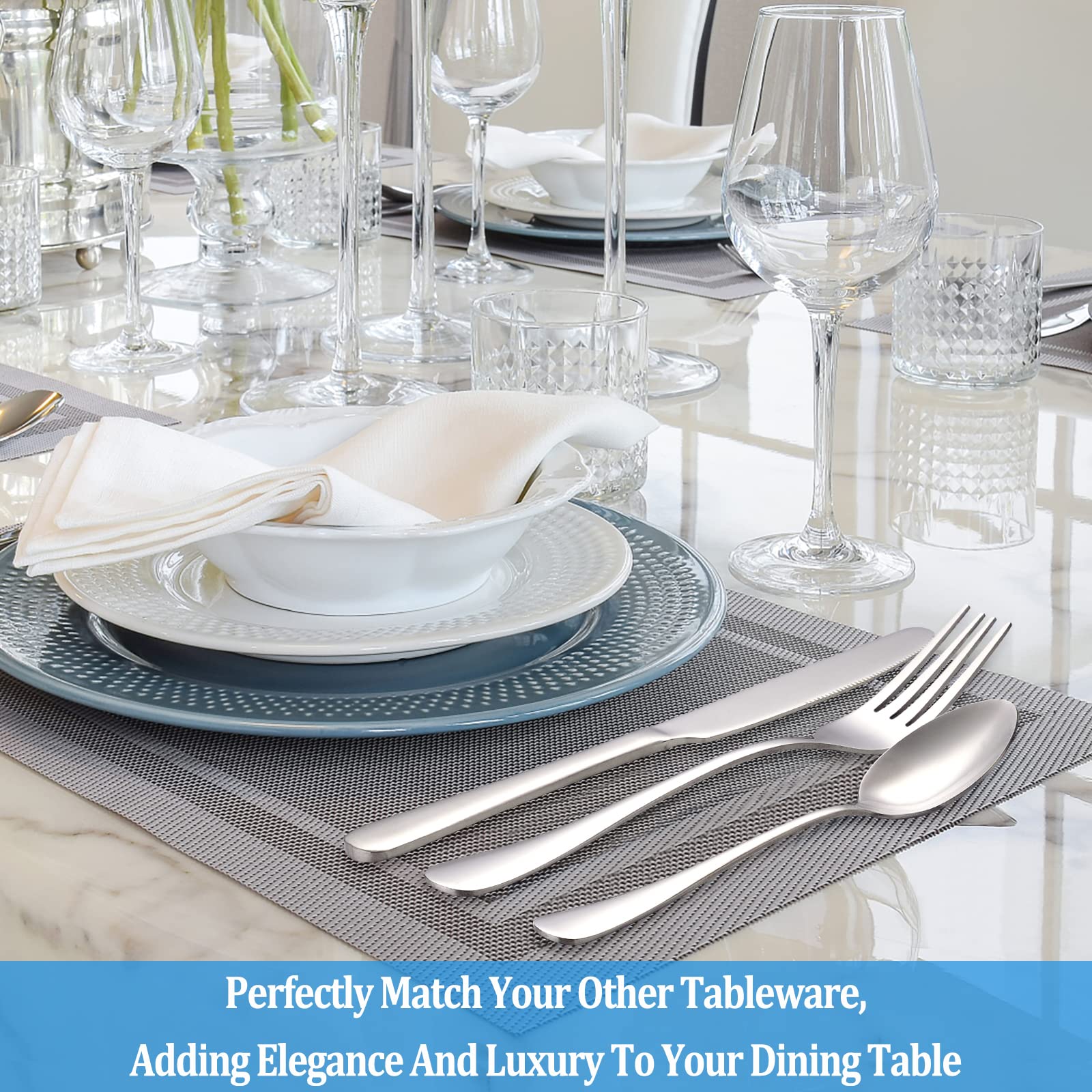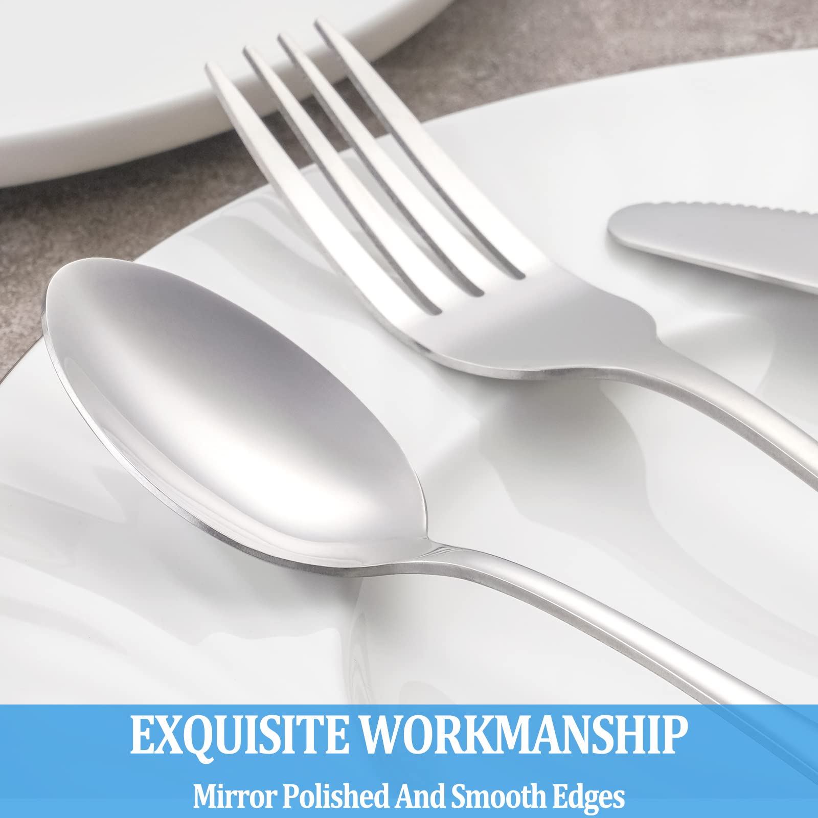 • PROPER WEIGHT AND COMFORTABLE HANDLE: Unlike other brands, the curvature of our spoons silverware handles is designed according to the posture of the hand, and the appropriate weight and perfect balance are added to ensure maximum comfort during use that avoids you feel tired. Moreover, the smooth edges ensure safety and no scratches.