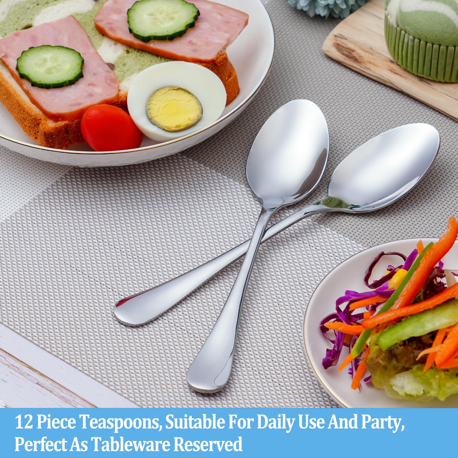 • HIGH QUALITY AND DURABLE: Our teaspoons are made of top food grade 18/10 stainless steel with mirror finish, providing you with a durable spoons set that will last you many years. Their edges have been polished many times and are smooth that they won't scratch your mouth. They are resistant to rust, corrosion and dishwasher safe. It's a great alternative to the plastic spoons.