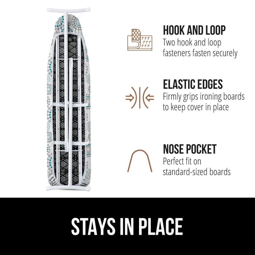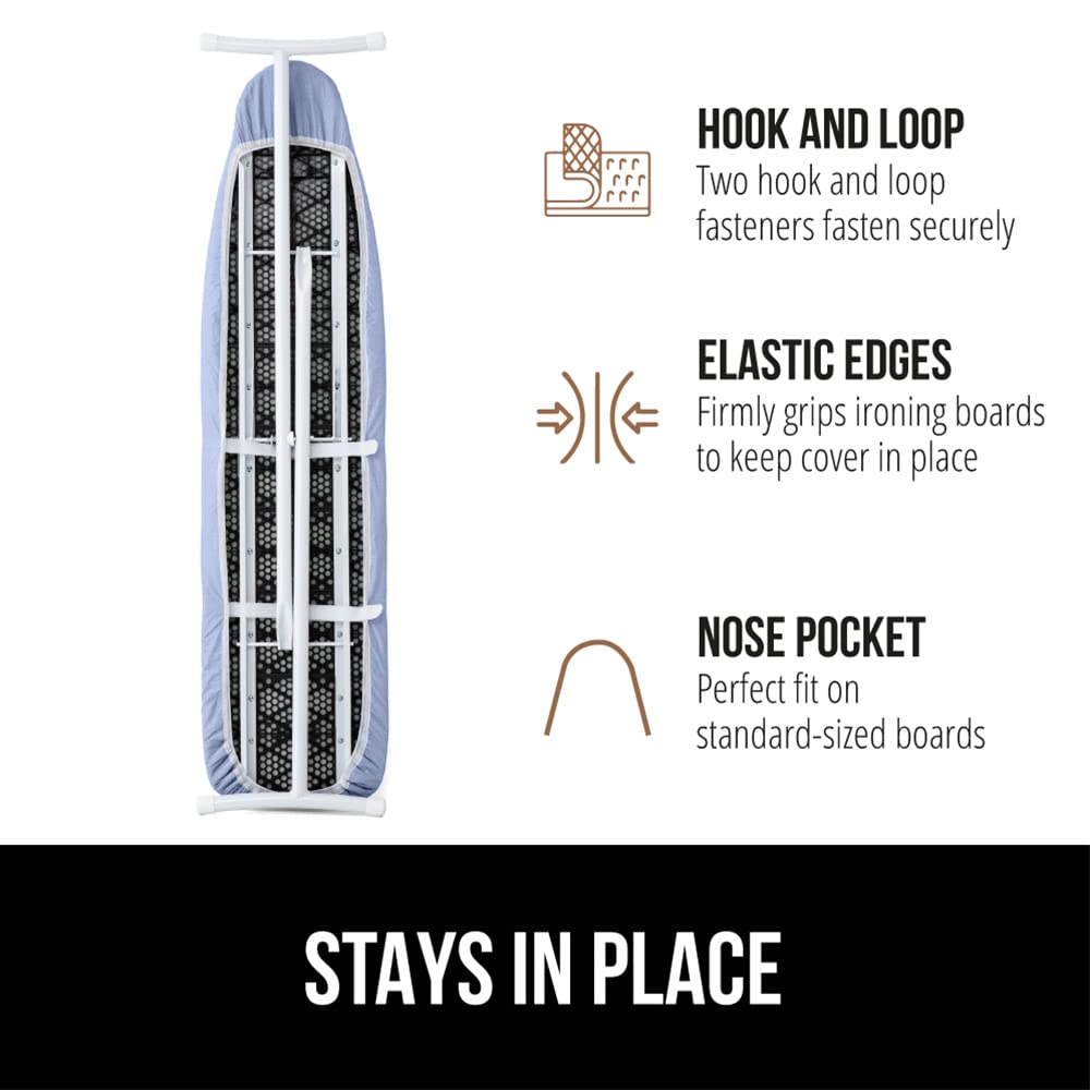 • EXTRA THICK PADDING: cover is extra thick and provides a durable barrier between clothing and the ironing board, so that the mesh from the board will not transfer to your clothing