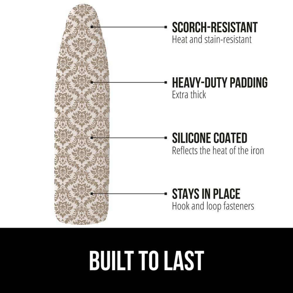 • HEAT, SCORCH, AND STAIN RESISTANT: heavy duty ironing board cover with extra thick padding is heat and scorch resistant up to 400 degrees; water and stain resistant for long lasting use