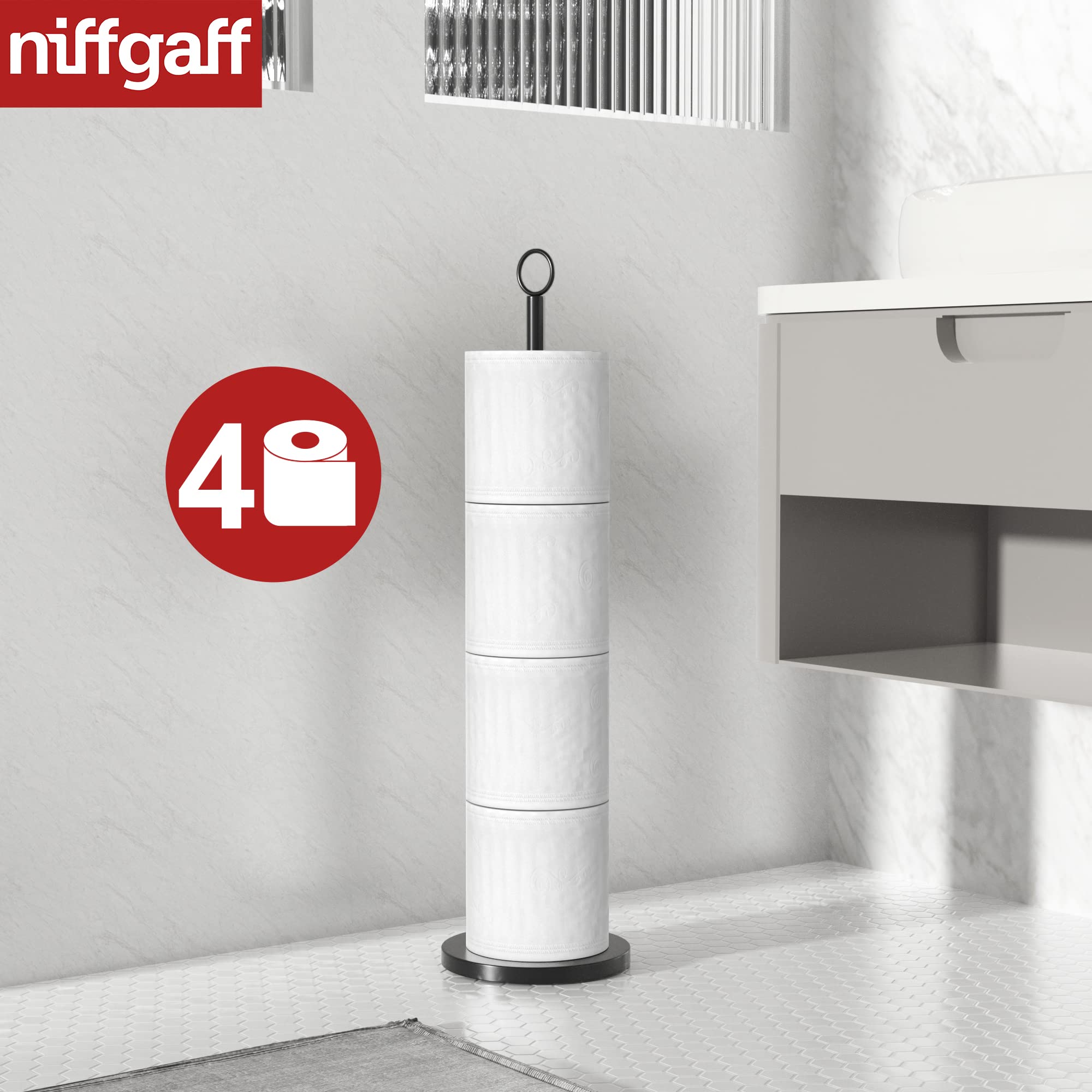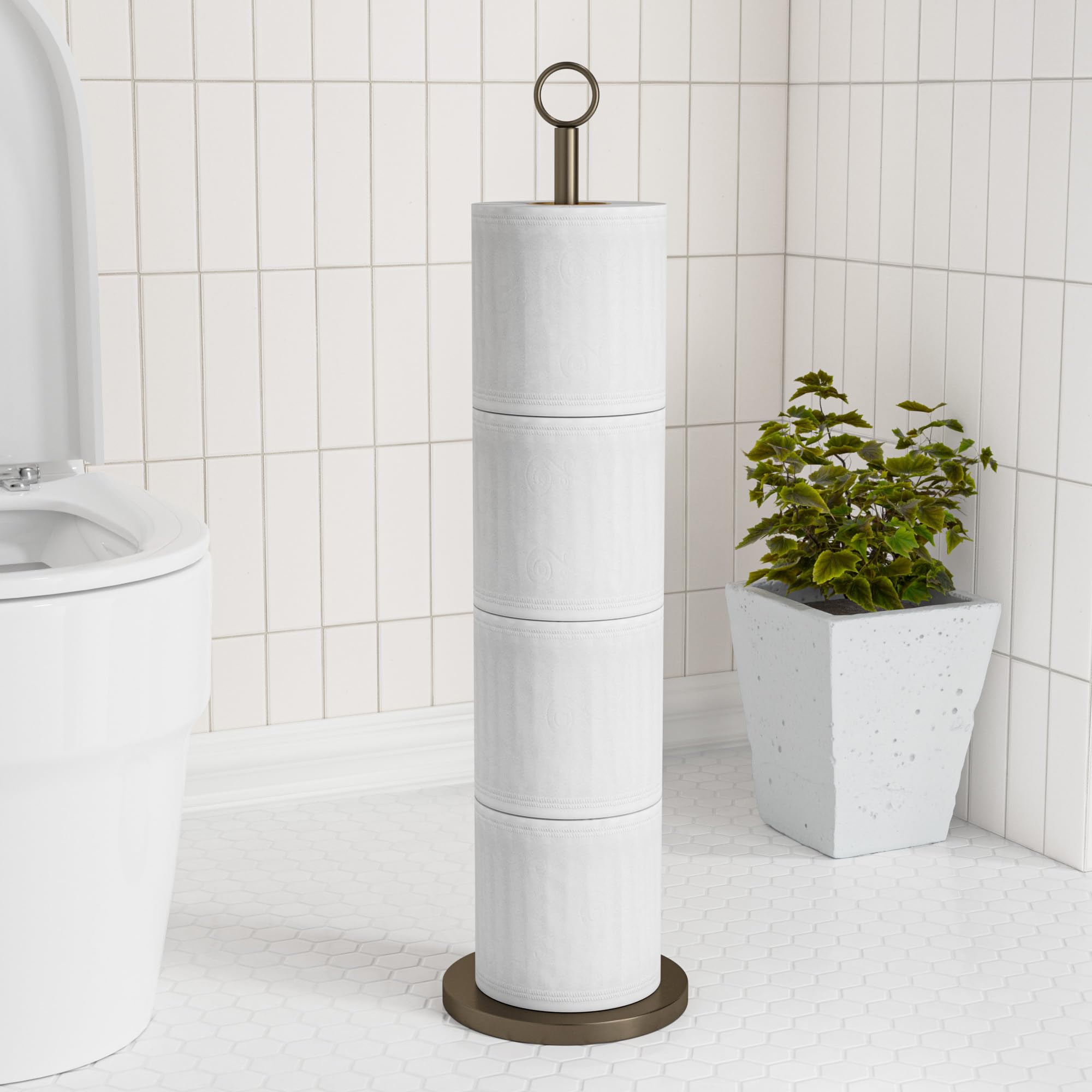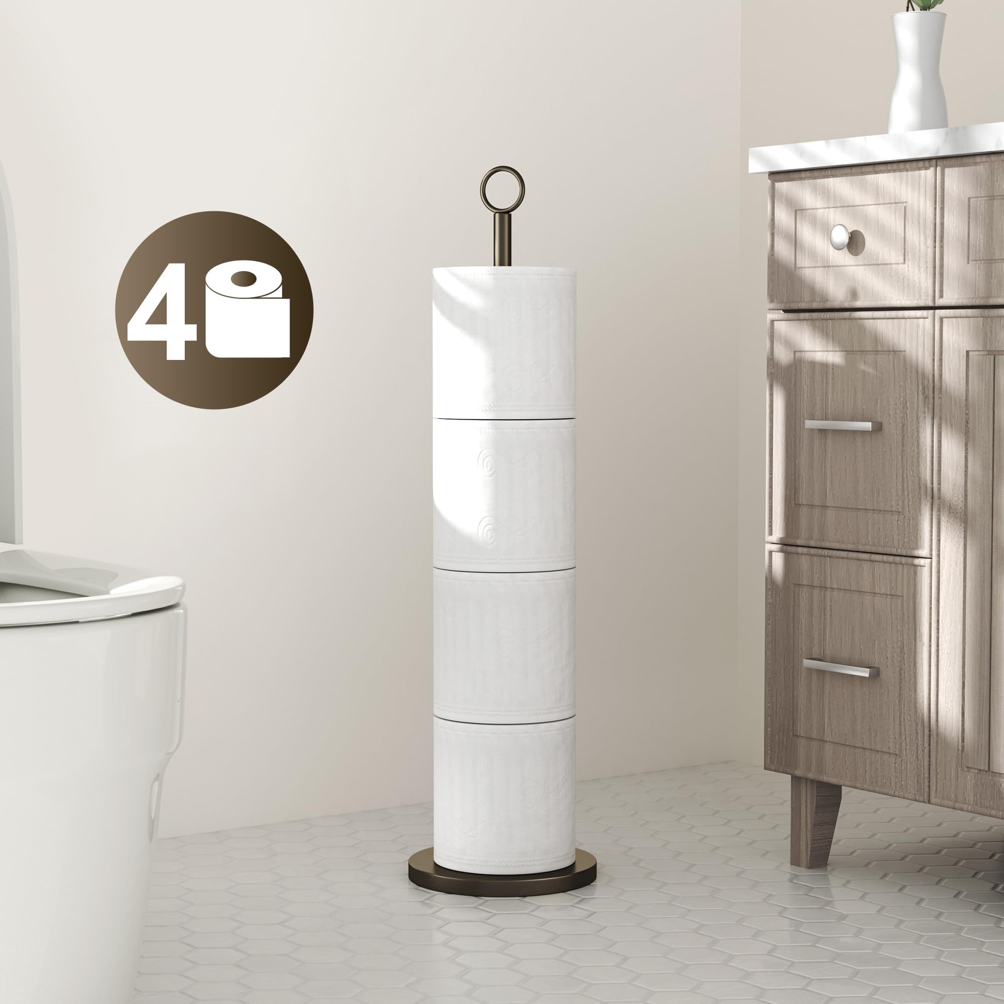 - 4 ROLL CAPACITY: This free-standing toilet paper holder is small but mighty, holds 4 rolls of 6" thick king/jumbo toilet paper rolls. Never worry about running out of toilet paper again!