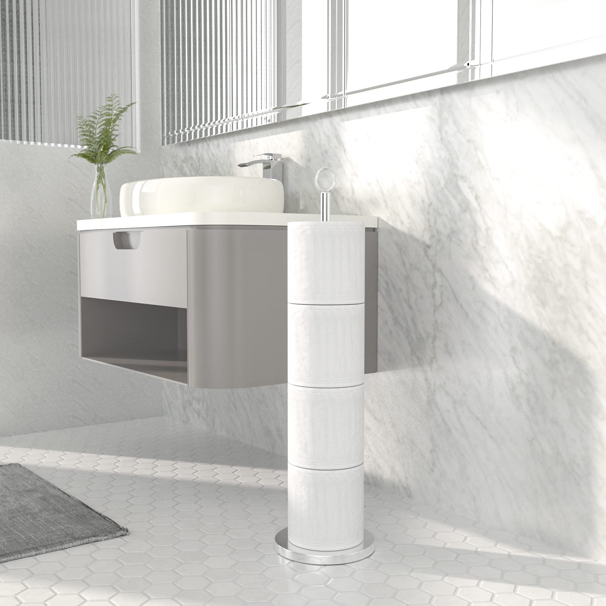 - MODERN & SLEEK DESIGN: Our toilet paper holder stand features a unique contemporary design that will add a touch of elegance to any bathroom. With its sleek curves and minimalist aesthetic, it's a stylish addition that will complement any decor.