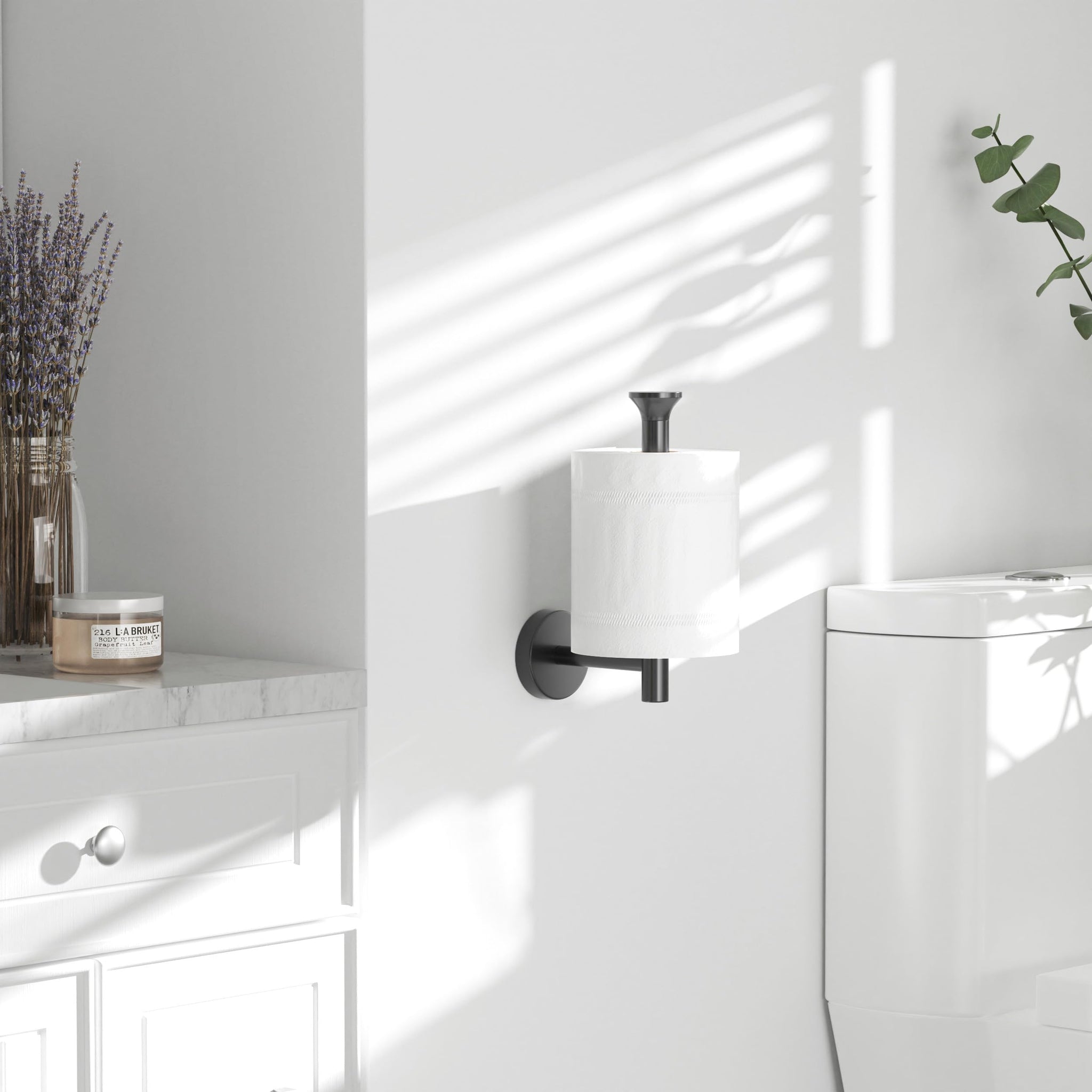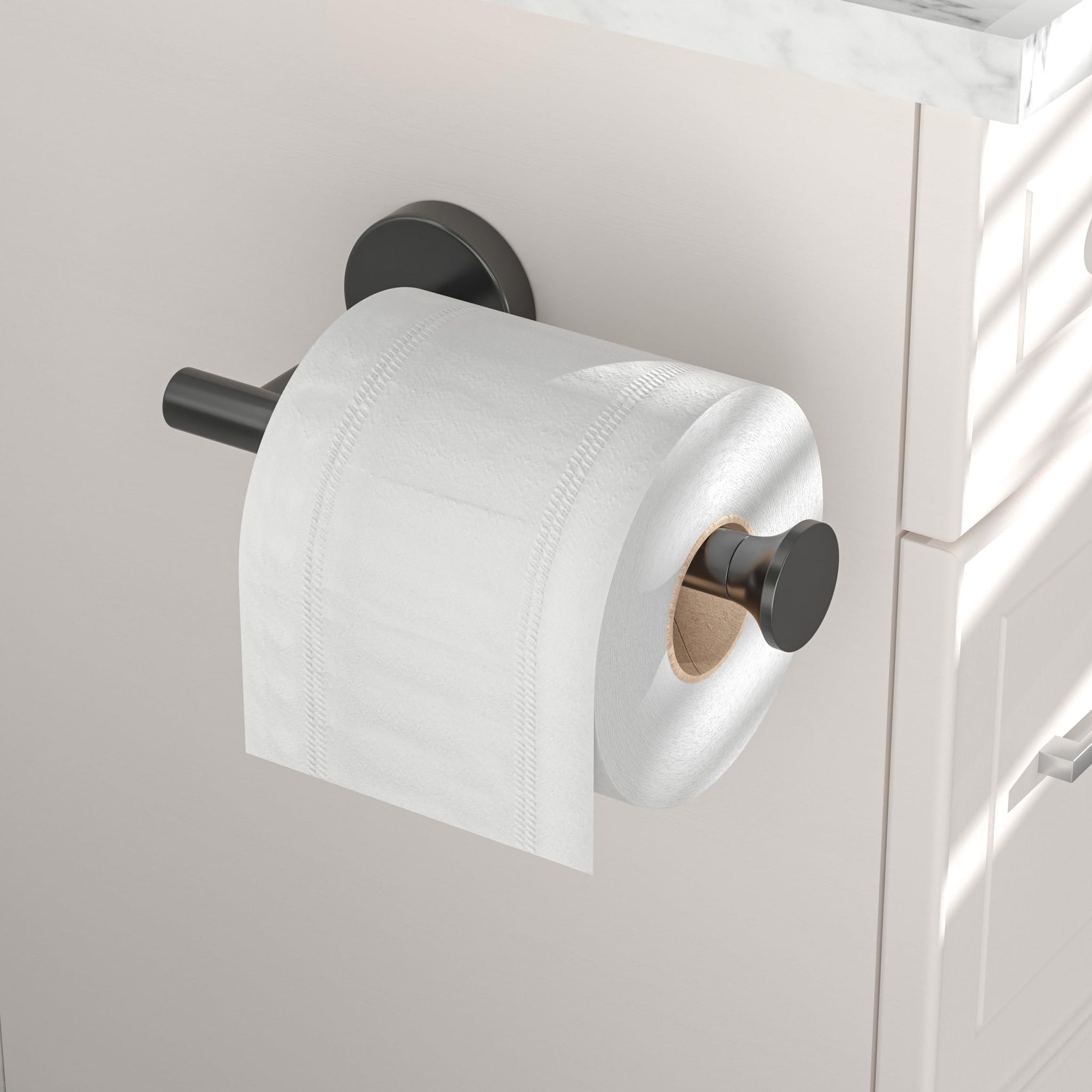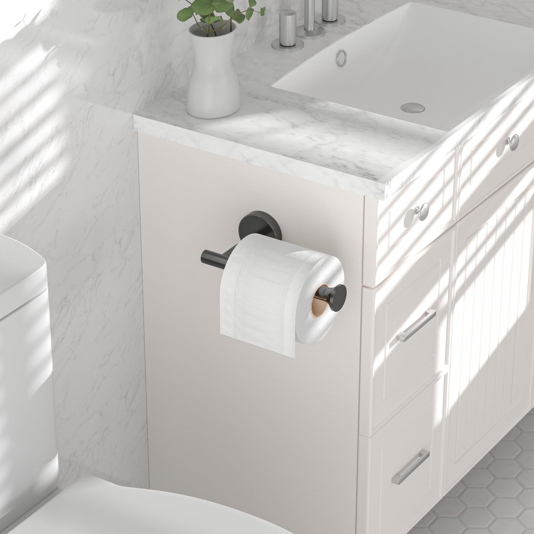 Toilet Paper Holder Wall Mount Bathroom Paper Roll Holder Tissue Handle Stainless Steel for Farmhouse Kitchen Matte Black