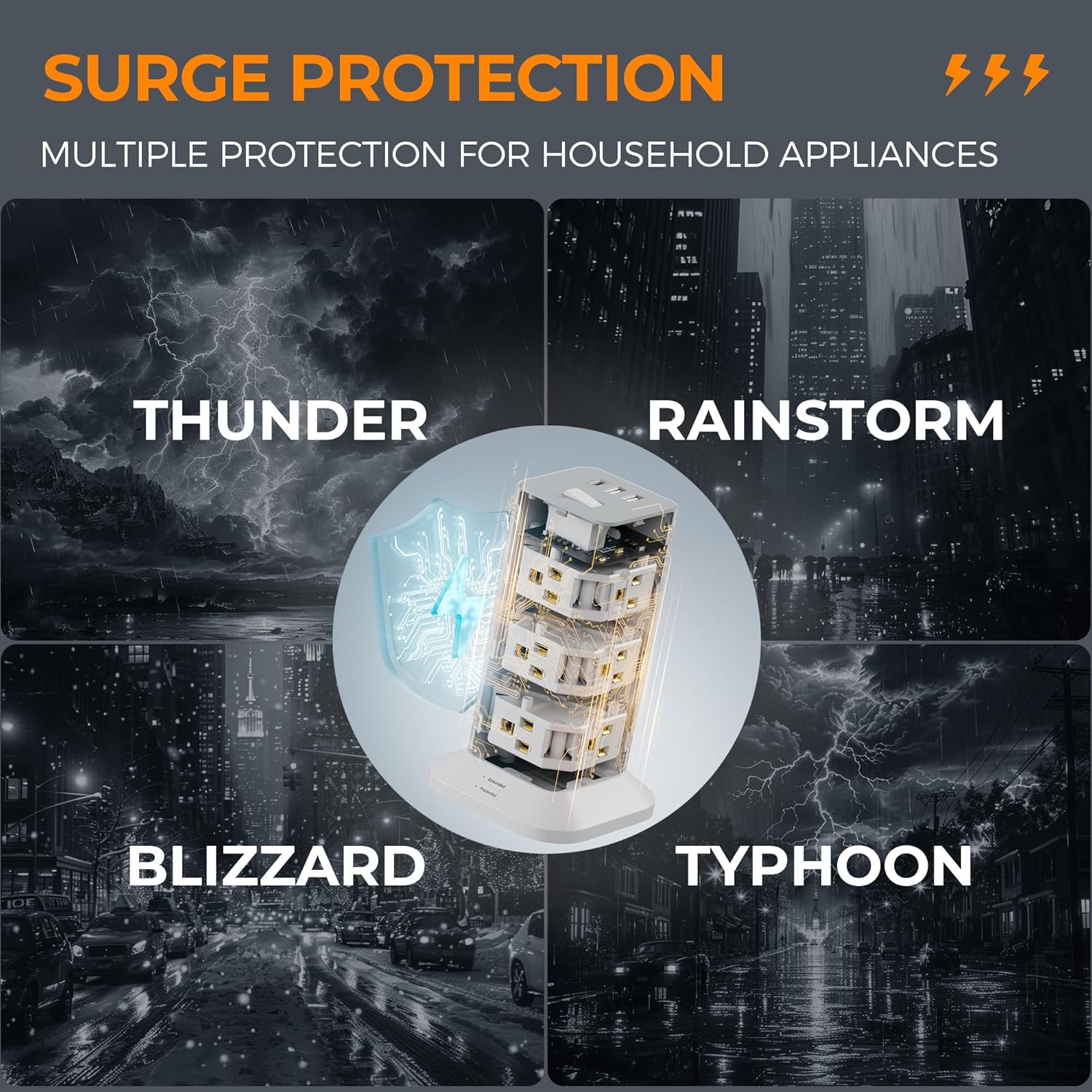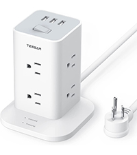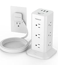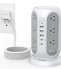 - Multiple Outlets Power Strip Tower: Our surge protector power strip tower has 8 outlets, and 3 USB ports. The multi-outlet plug tower supports a wide voltage of 100V-250V, with 15A heavy-duty 6ft extension cord rated 1875W. And 3 USB Ports total is 5V/ 3A. (5V/ 2.4A Max Per Port) This 14 in 1 power strip can be your charging station for multiple devices