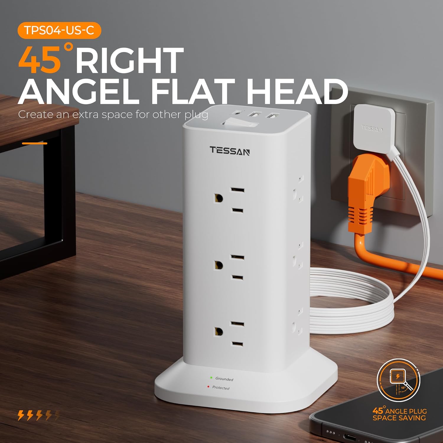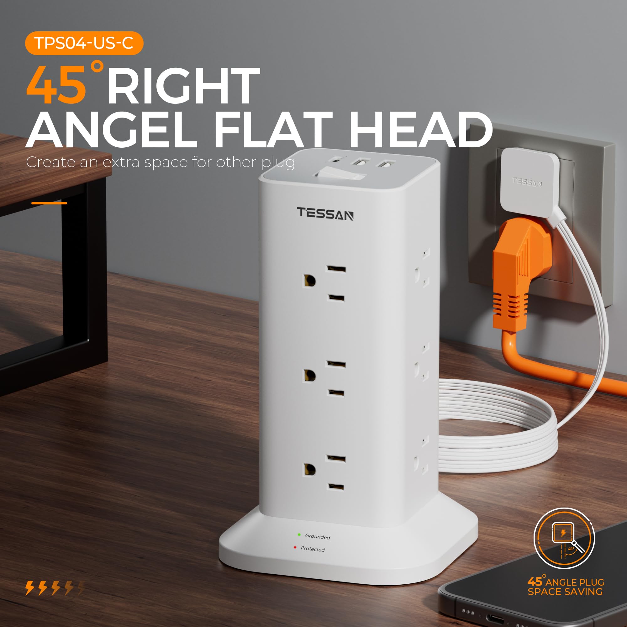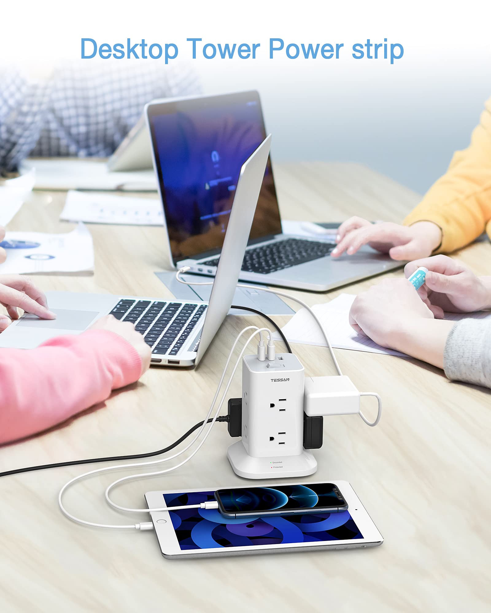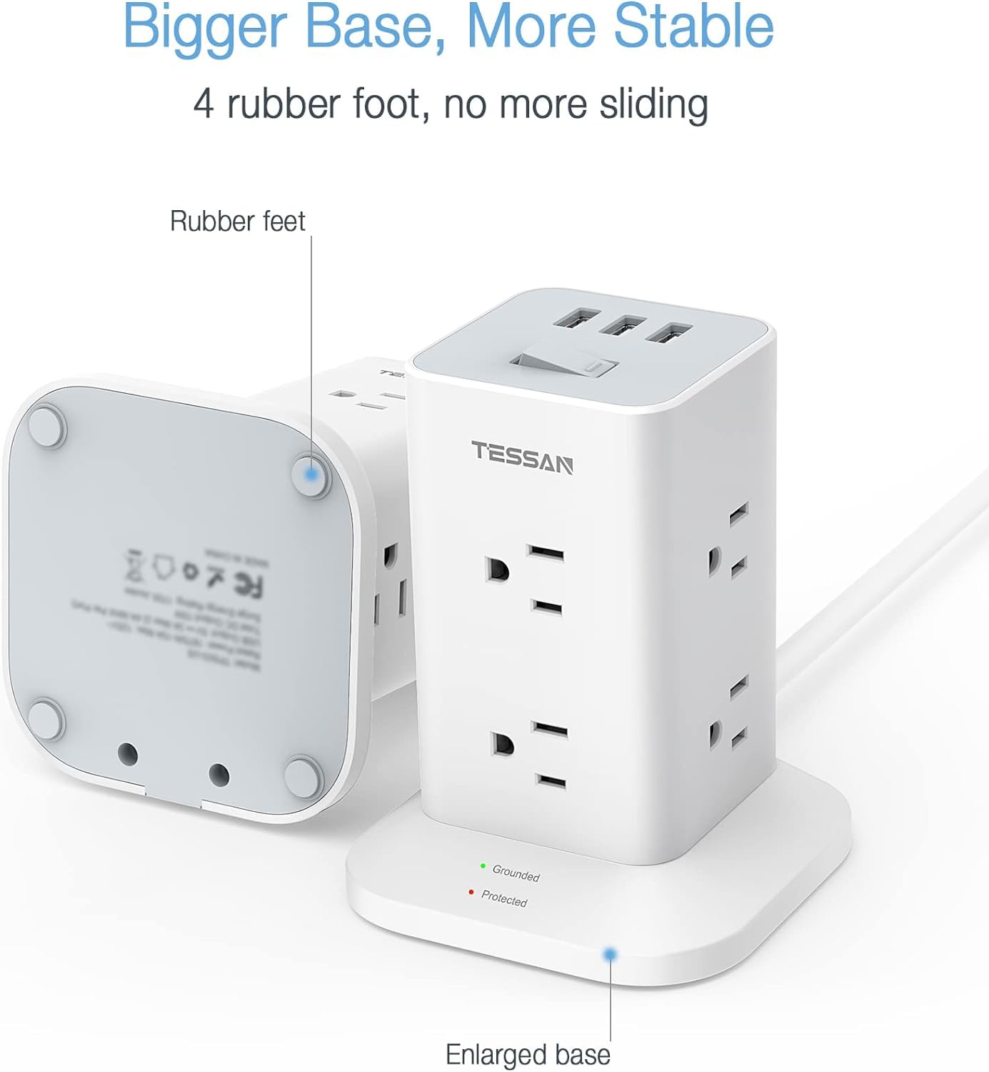 - Space-Saving Tower Design: With the unique vertical design, the TESSAN charging station helps you save space. Don't need to worry about big plugs blocking each other. Choose this office supplies, and make your desktop tidy