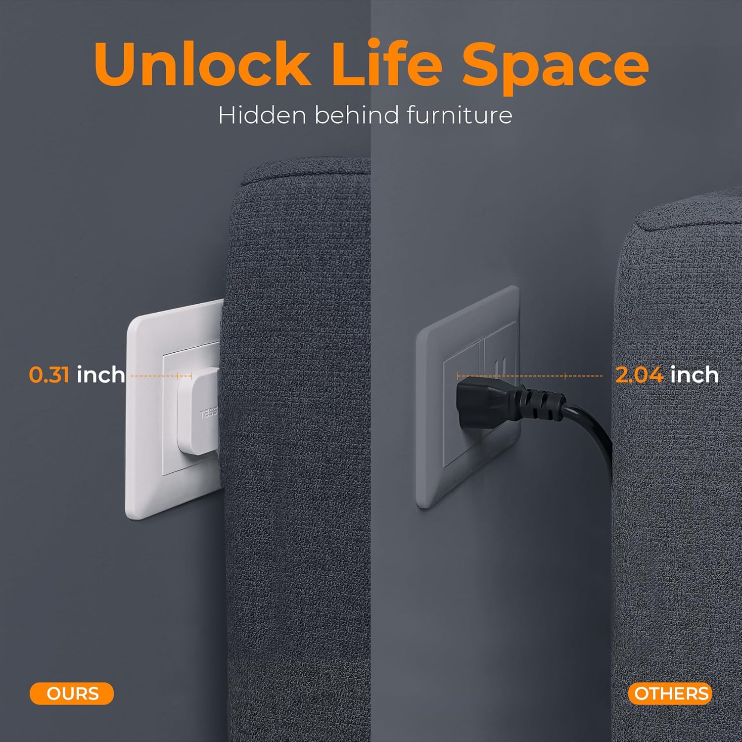 - 6 FT Extension Cord:The power cord is housed in durable braided insulation and jacket. And the extension cord with multiple outlets also has a 45° flat plug, which fits easily into hard-to-reach places behind your bed or sofa. Widely used for home, office, or other places