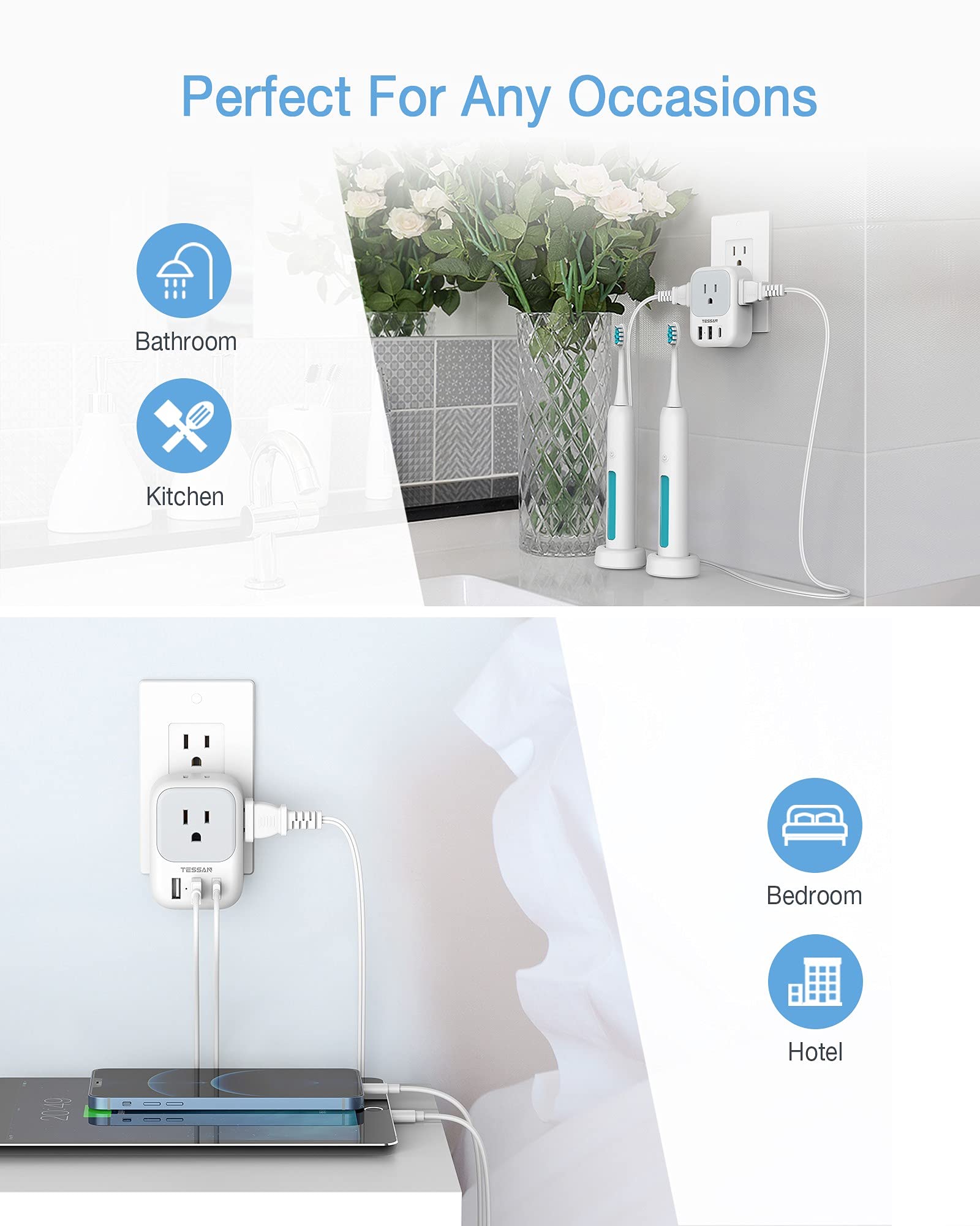 - Suitable for Any Occasions: TESSAN USB charging station can be used in any indoor place with socket, especially for the bedroom, bathroom, kitchen, hotel and college dorm room etc