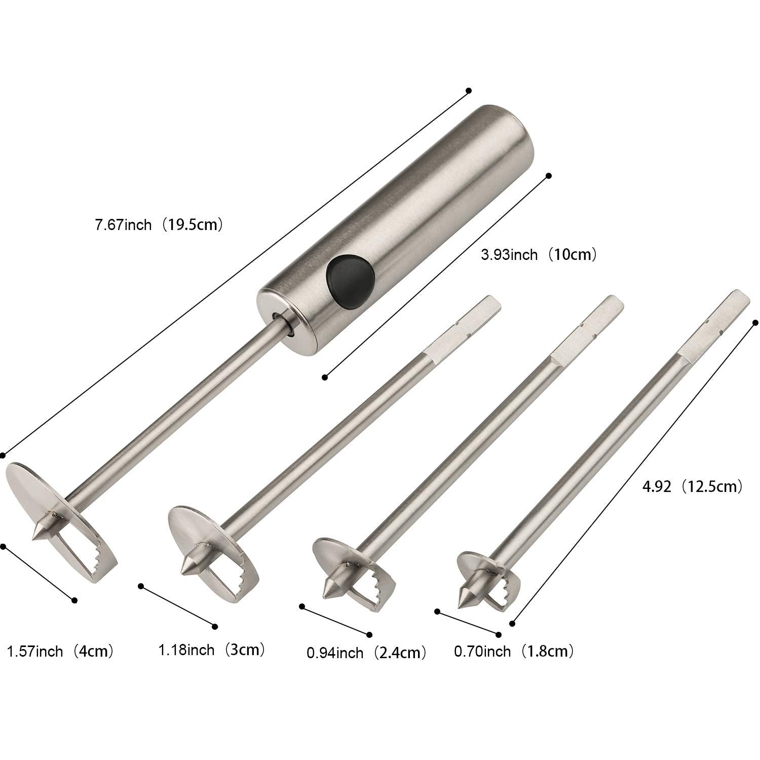 • Four Different Sized Blades: Blades Size: 1.8 cm/0.7 inches, 2.4cm/0.94 inches, 3cm/1.18 inches, 4 cm/1.57 inches. Different sized blades, make easy to core and stuff on different sizes of veggies and fruit. Perfect for hollowing out fruit and veg.