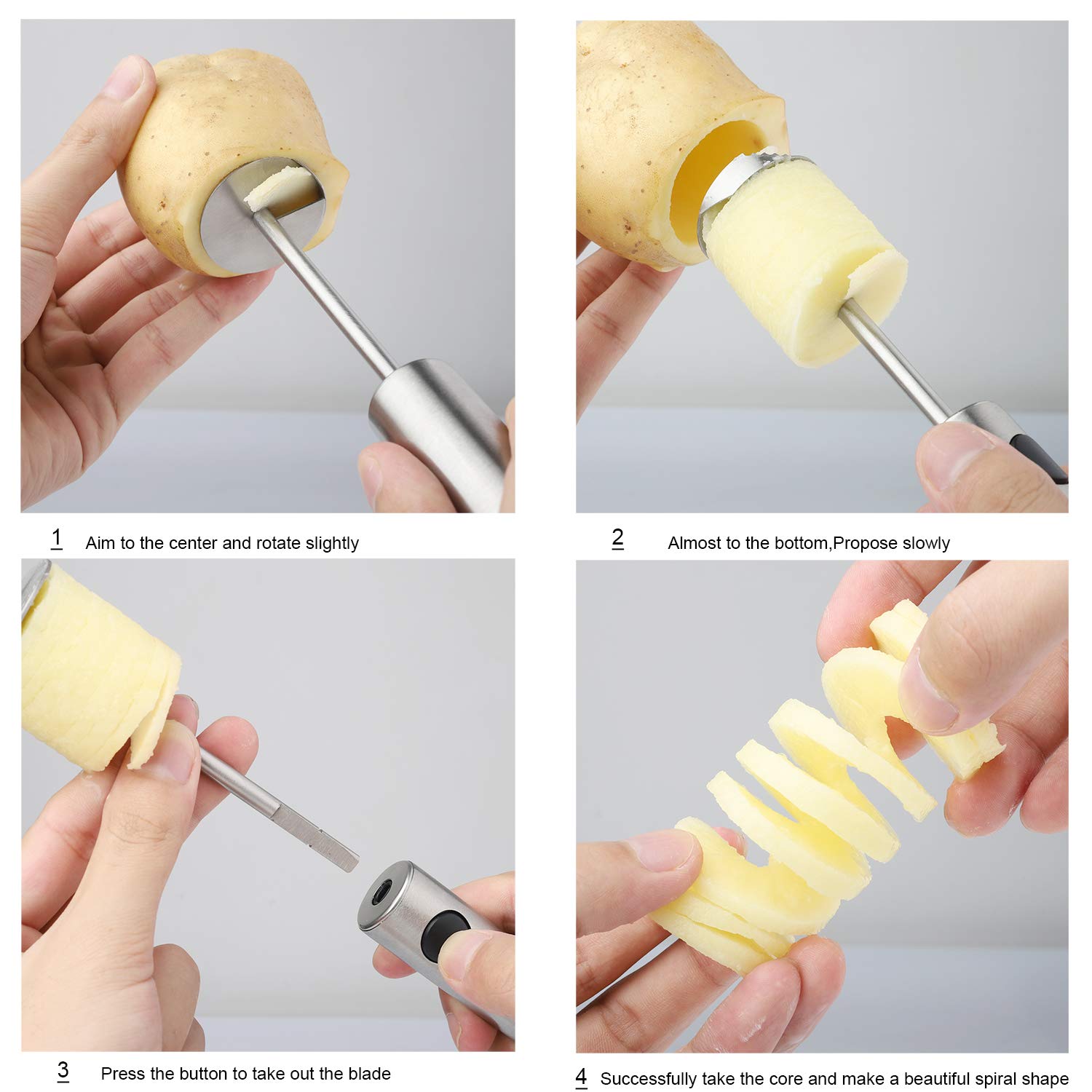 • Easy to Use: Center the tip of the corer on a level surface, and twists or push corer through the fruit/vegetable. Twist the vegetable/fruit using little or a lot of pressure depending on how thick you want the spirals.