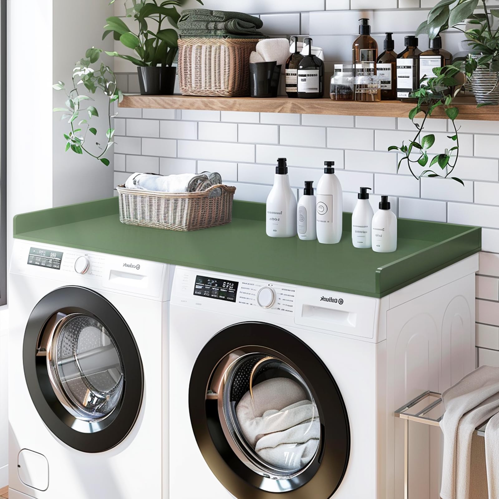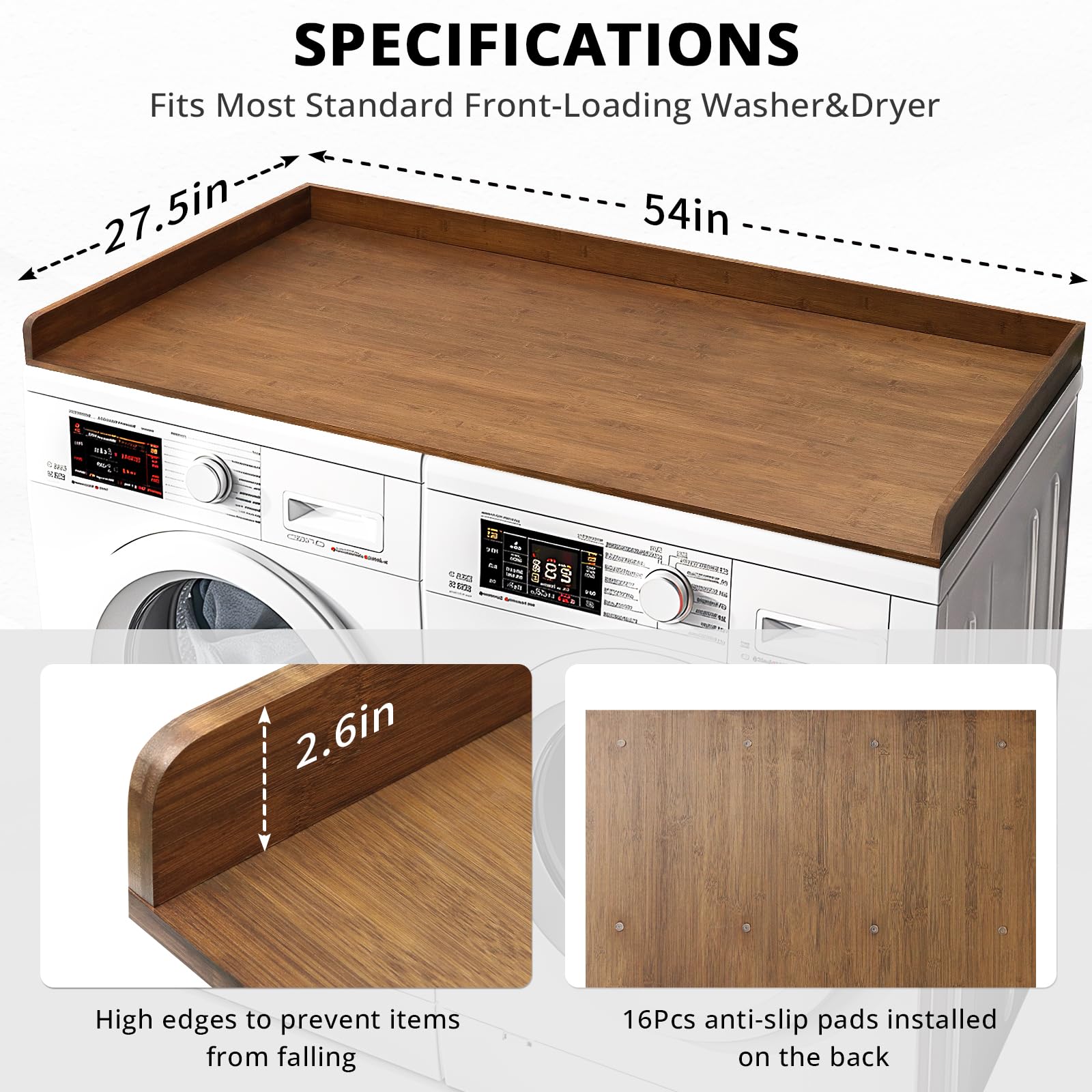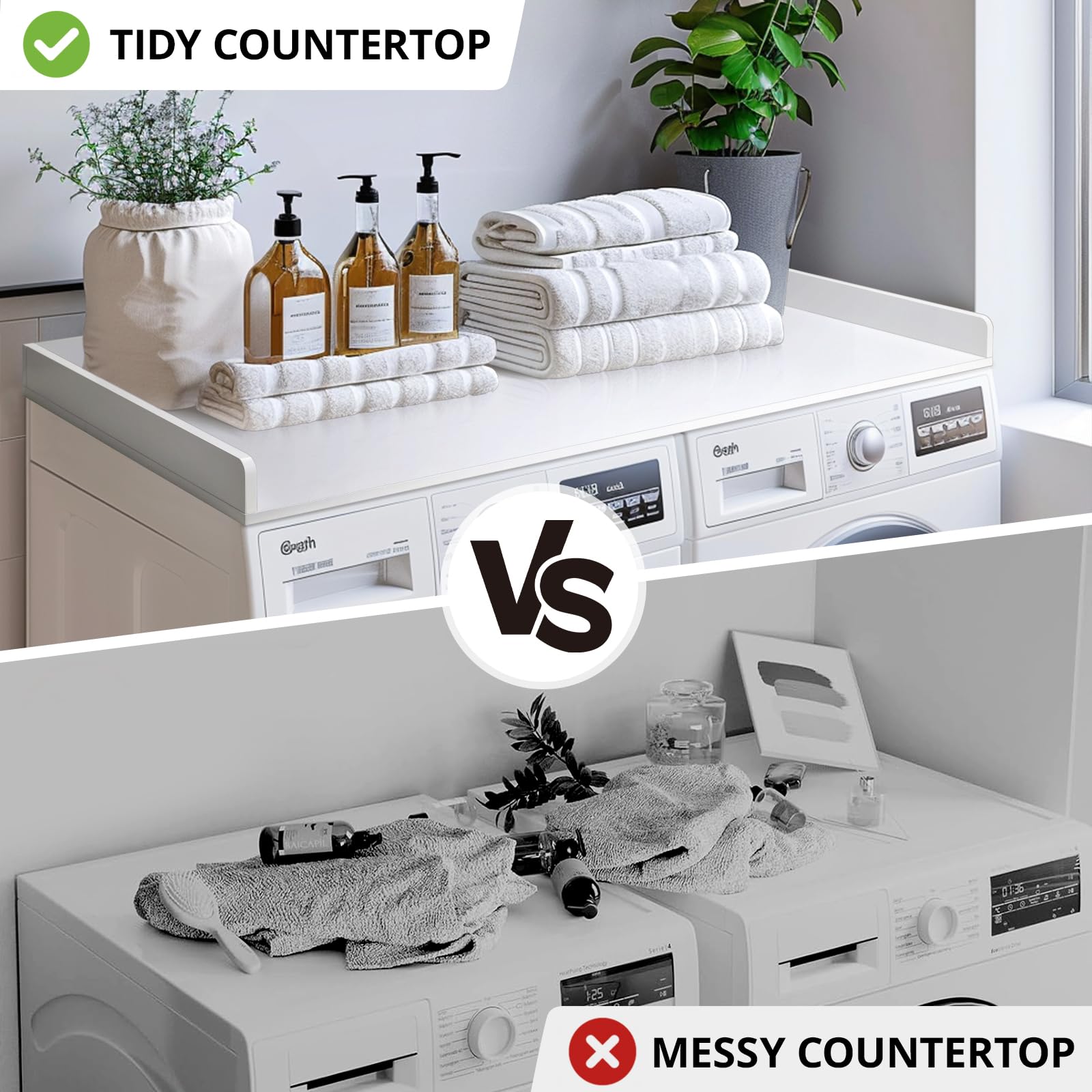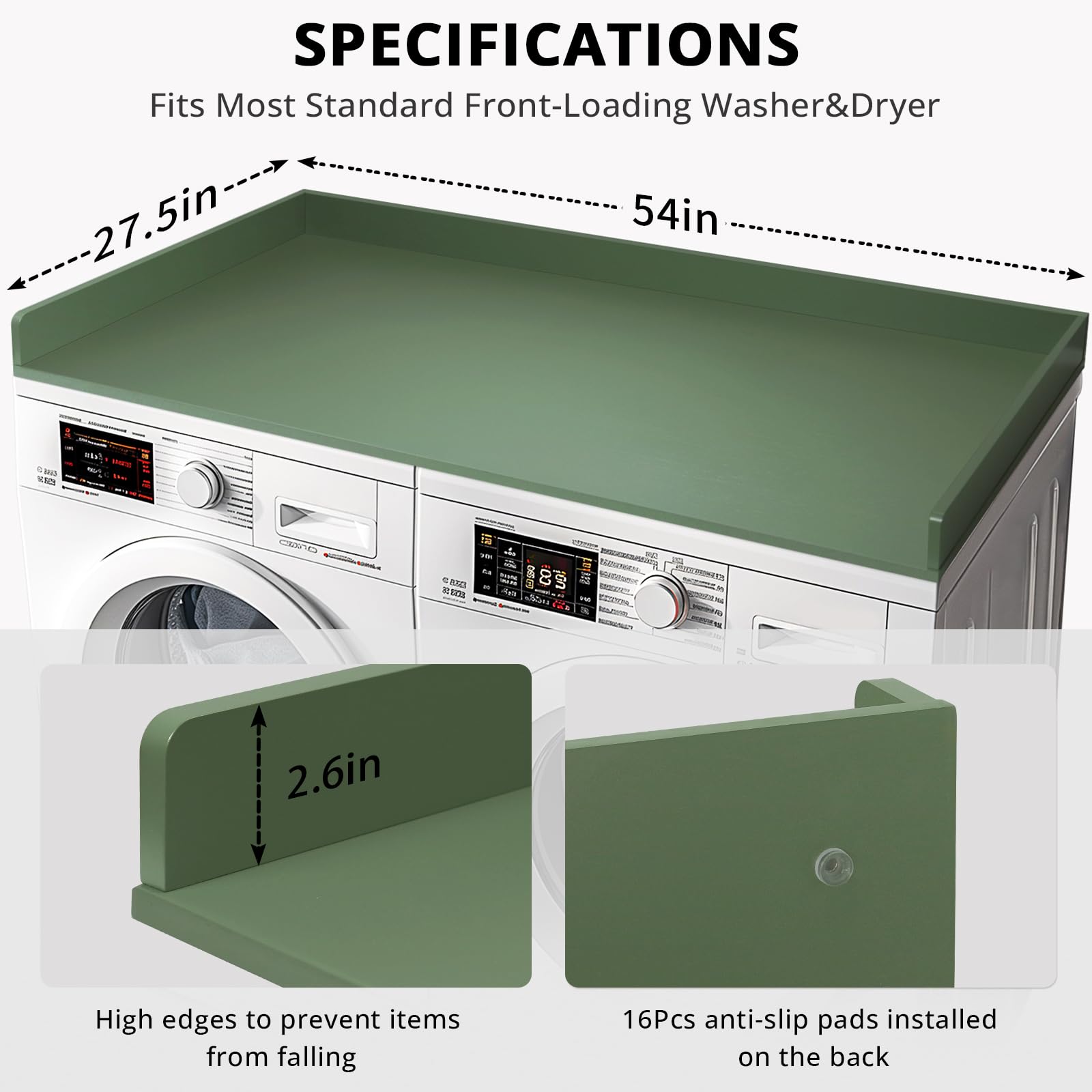 - Detail Design: The laundry countertop has raised edges to stop items from falling off. This modern design works with any laundry room organization style. and the laundry countertop include silicone non-slip pads on the bottom of the countertop, it can prevent laundry countertop from sliding around.