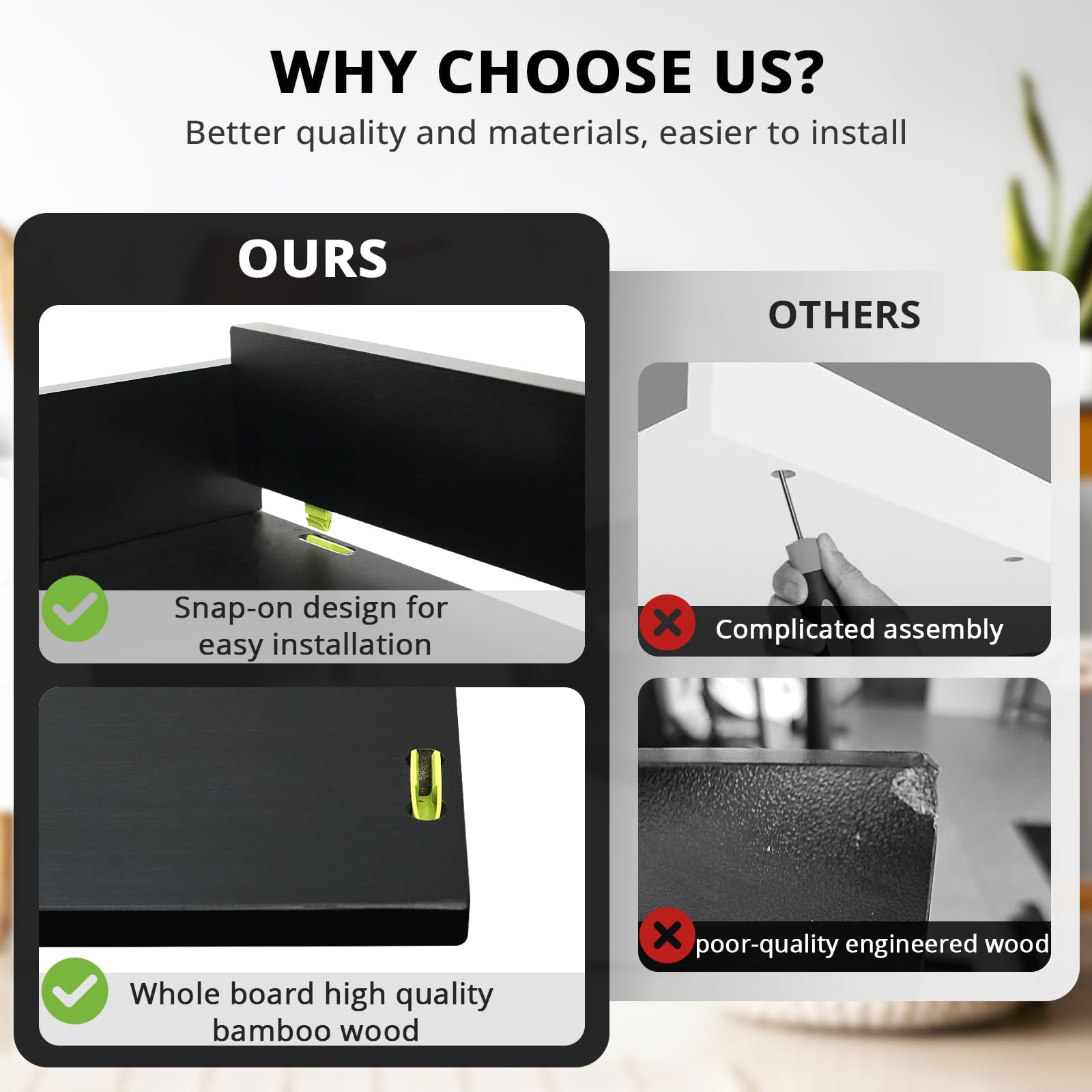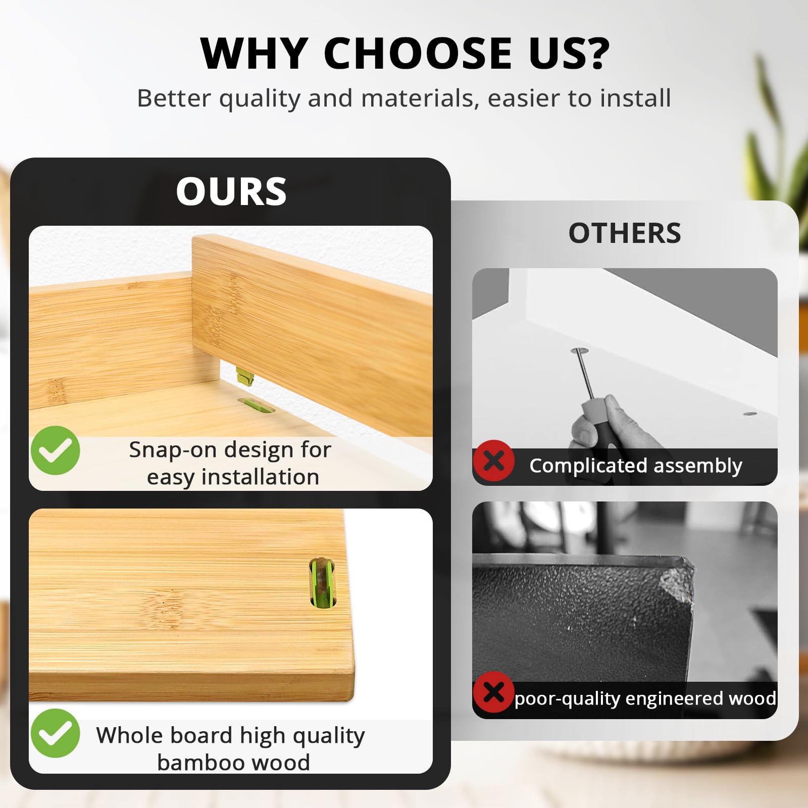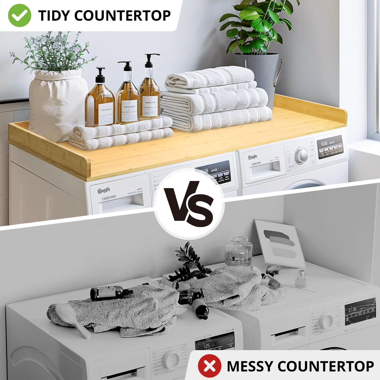 - High-Quality Materials: Our washer dryer countertop is made from premium bamboo. It adds a natural and stylish look to your space and fits well with any decor.