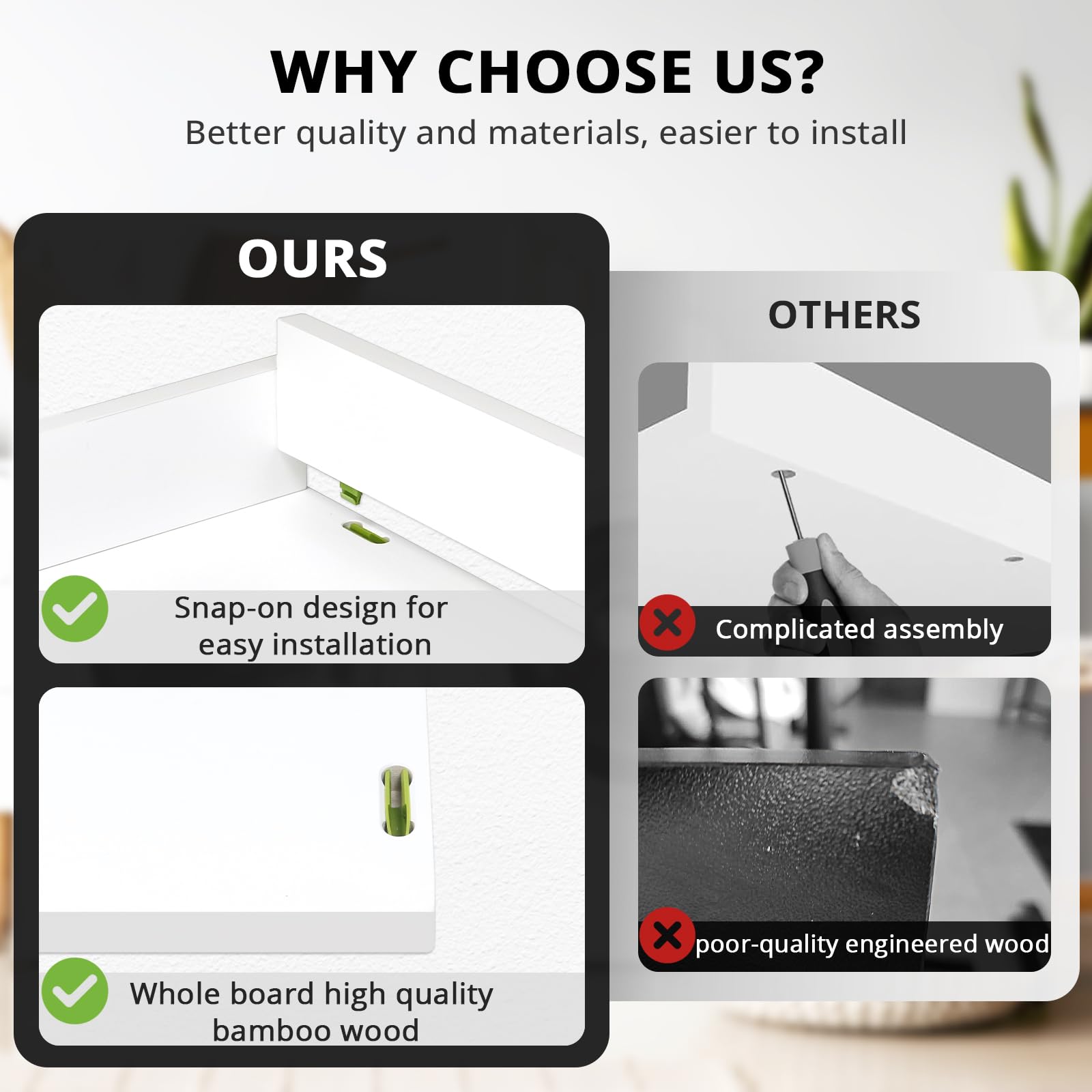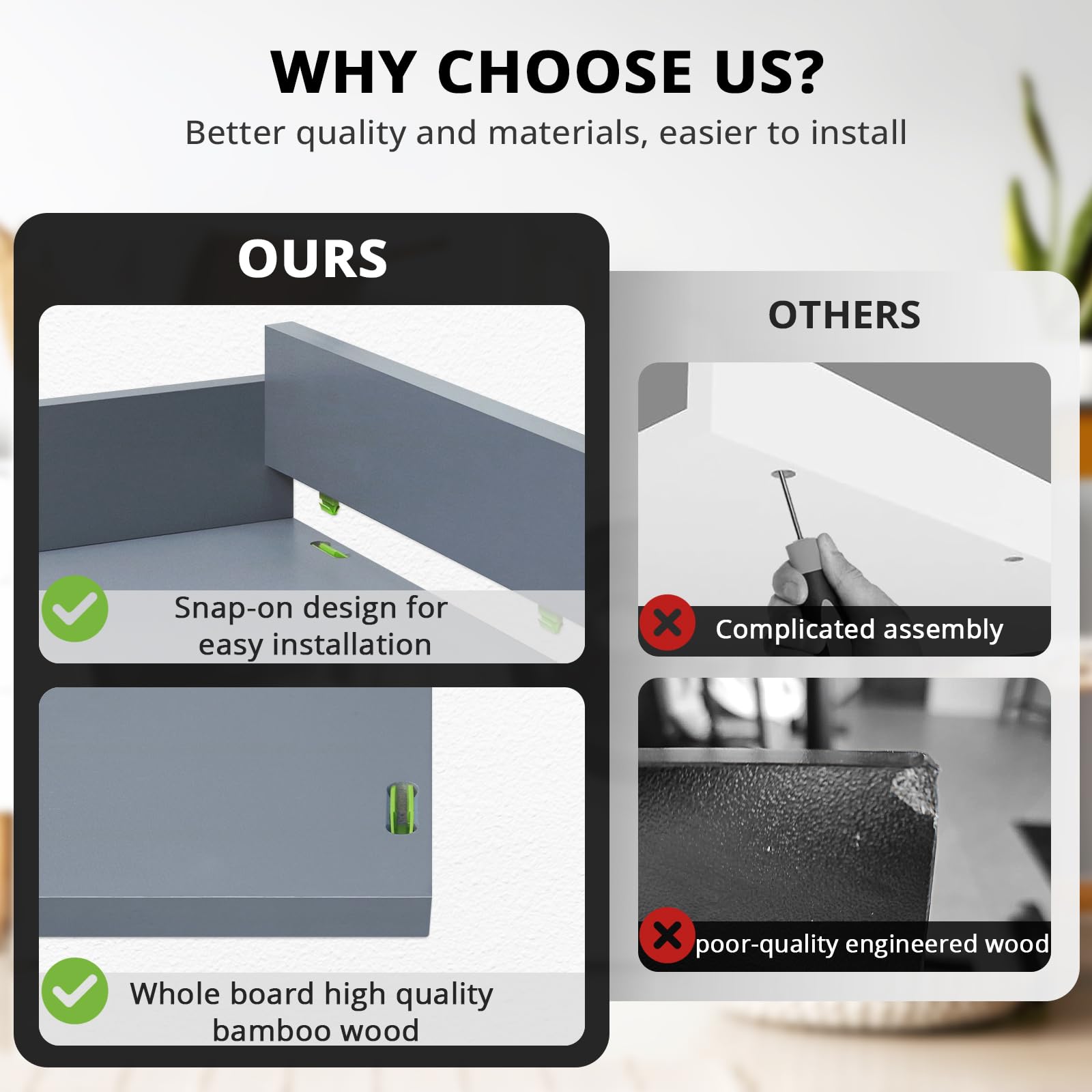 - Stylish Laundry Organization: Improve the look of your laundry space with our laundry countertop. Enjoy doing laundry while adding elegance to your area.