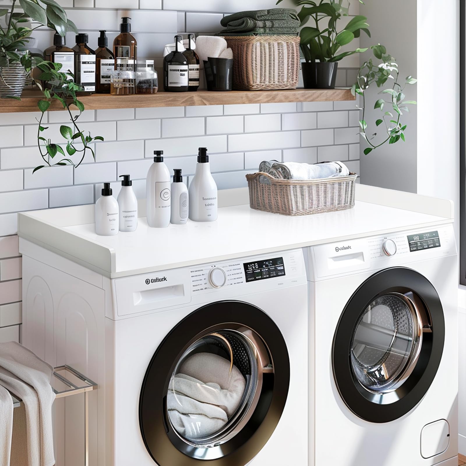 - More Workspace: Upgrade your laundry room with GaShell's washer dryer countertop, It's great for laundry organization. SIZE: 54"W x 27.5"D x 3.2"H. You'll have enough space to sort and organize clothes easily.