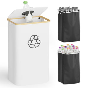 SpaceAid Recycling Bin for Kitchen 26 Gallon, 100L Recycle Bin with Lid and 2 Reusable Inner Bags, for Bottle Can Glass Plastic Stickers, Blue
