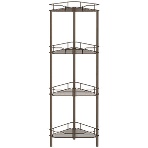 4 Tier Floor Standing Corner Shower Caddy Organizer Shelf with Hooks, Bathroom Shelves Stand Rack, Black