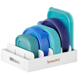 SpaceAid Bamboo Lid Organizer, Kitchen Pantry Lids Holder with 5 Adjustable Dividers for Cabinets, Food Storage Container Organizers, Natural