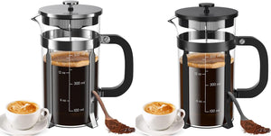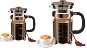 French Press Coffee Maker, 21 Ounce & 34 Ounce, Stainless Steel, Cold Brew Heat Resistant Borosilicate Glass Espresso Coffee & Tea Maker with 4 Filter