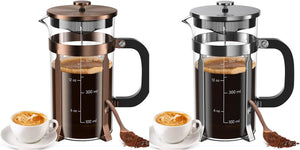 French Press Coffee Maker, 2 * 21 Ounce, Stainless Steel, Cold Brew Heat Resistant Borosilicate Glass Espresso Coffee & Tea Maker with 4 Filter