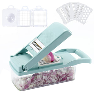 Vegetable Chopper, Multifunctional Vegetable Cutter Onion Chopper Mandoline Slicer Dicer with Colander Basket and Container 8 Interchangeable Blades