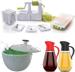 Brieftons 7-Blade Spiralizer, Brieftons Salad Spinner (6.2-Quart), Brieftons Oil & Vinegar Dispensers