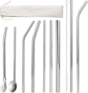 9 Pcs Stainless Steel Straws Metal Drinking Straws Reusable for Tumblers and Travel Mugs, Cleaning Brushes and Cloth Bag Included