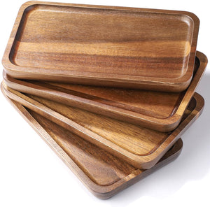 YellRin Wood Serving Trays Set of 4 Wooden Serving Platters for Home Decor, Cheese, Fruit, Vegetables, Charcuterie, Appetizer Serving Tray