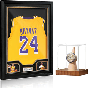 JupDec Jersey Frame & Championship Ring Display Case, Large Clear Acrylic Shadow Box with UV Protection Wooden Showcase, , Idea Gift for Sports Fans