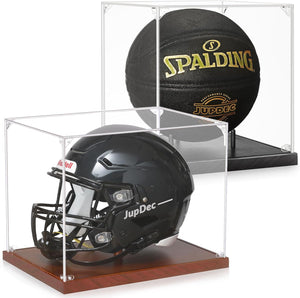 JupDec Basketball & Full Size Helmet Display Case, Large Clear Acrylic Shadow Box with UV Protection Wooden Showcase,Idea Gift for Sports Fans